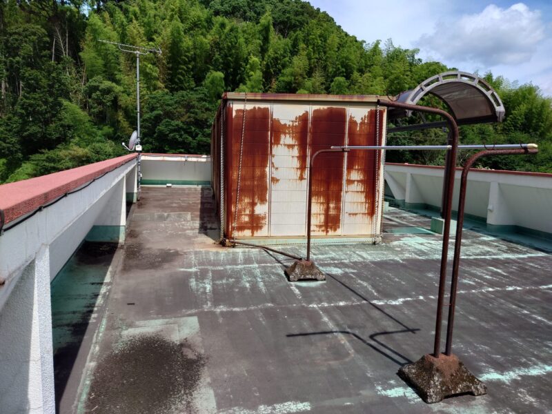 屋上には長年使用されていなかった鉄骨+鋼板製の物置が設置されていました。