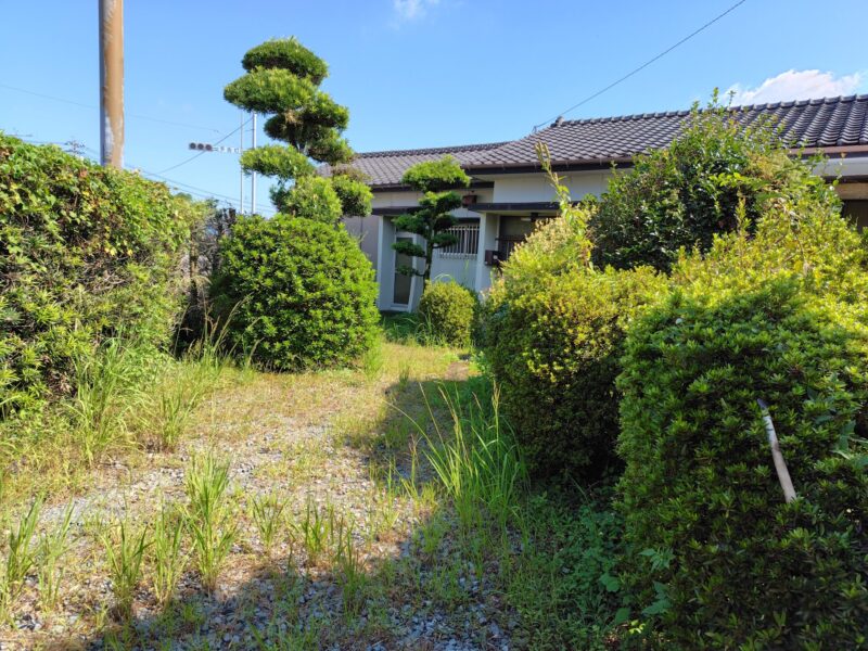 雑草や植栽が繁茂し、管理が必要な状態でした。